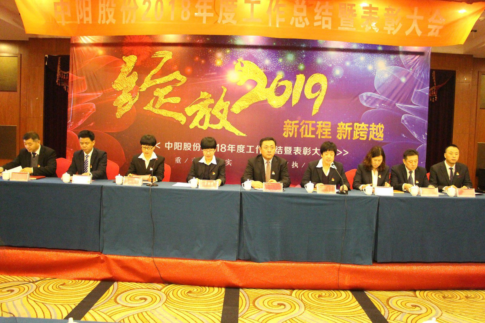 2019年1月8日上午,中陽(yáng)股份2018年工作總結(jié)暨表彰大會(huì)在藍(lán)海酒店順利召開(kāi)??偛俊⒈本┺k事處全體成員、生產(chǎn)部班長(zhǎng)級(jí)以上人員及員工代表參加了此次年度大會(huì)。