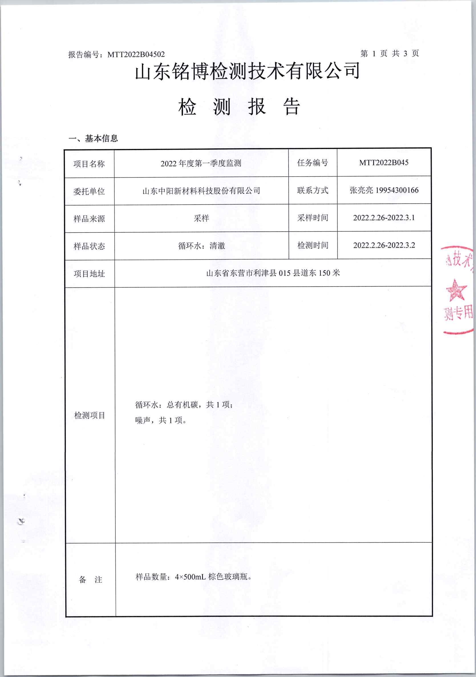 2022年第一季度檢測報告(循環(huán)水水質(zhì)、噪音)